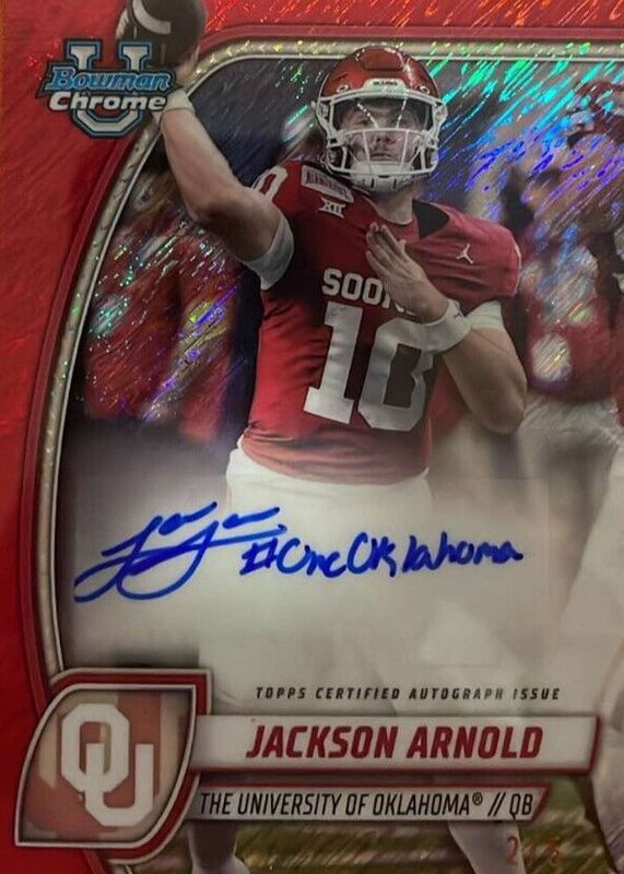 Best Prices Available For Sale of Jackson Arnold 2024 Bowman Chrome University #PA-JAR Prospect Auto - Red Shimmer Refractor /5