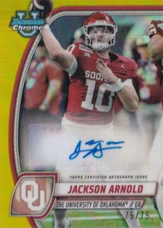 2024 Bowman Chrome U Football Jackson Arnold Yellow Refractor Auto /75