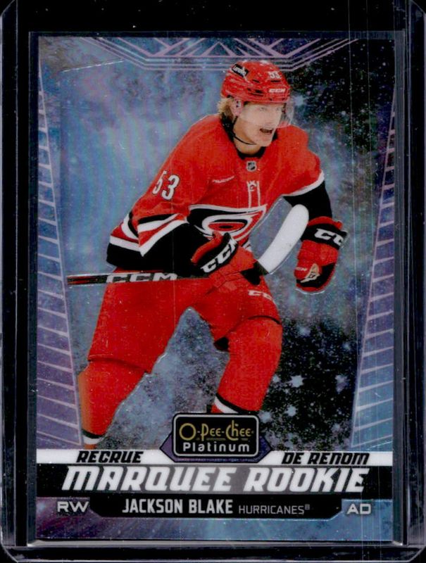 The Jackson Blake 2024 O-Pee-Chee Platinum #221 Cosmic /65 Rookie card is 1 of 15 Jackson Blake's card variations in the 2024 O-Pee-Chee Platinum set being tracked by Sports Card Investor, including Base, Neon Yellow Surge, Pink Magma, Rainbow, and Sunset.
