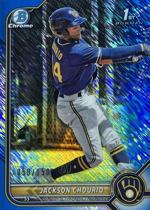 2022 Bowman Chrome Jackson Chourio Blue Shimmer Refractor #/150 Brewers O319