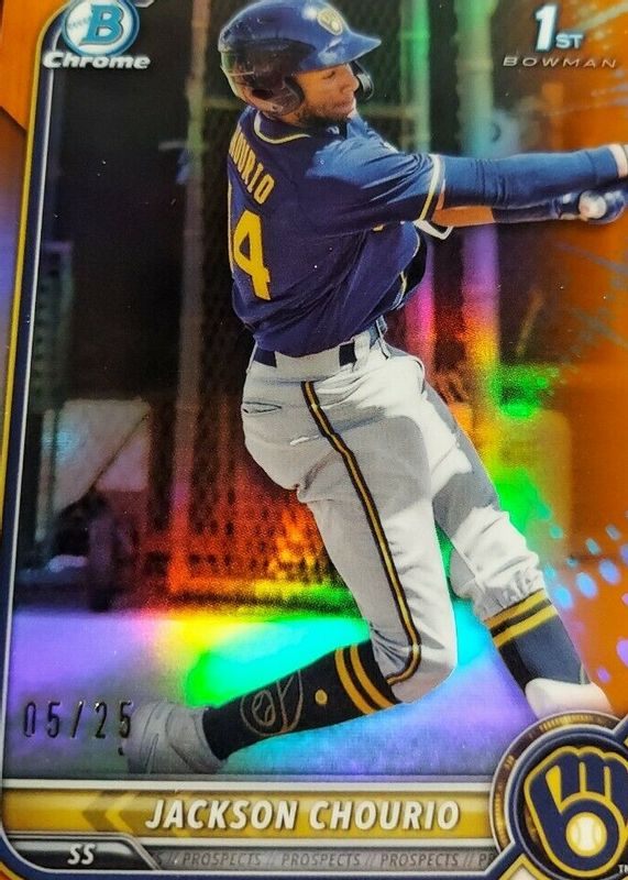2022 Bowman Chrome 1st JACKSON CHOURIO True Orange Refractor #4/25 Brewers