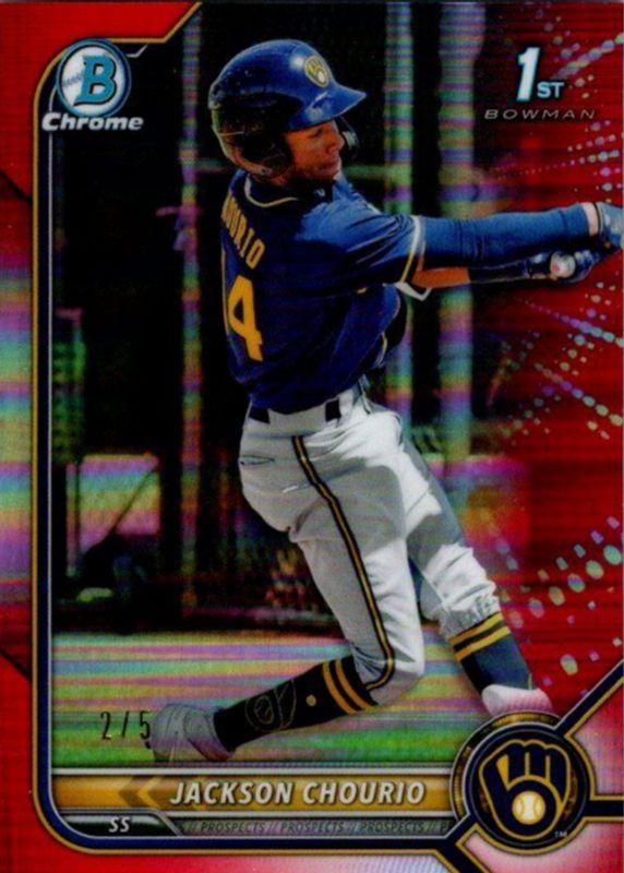 Jackson Chourio 2022 Bowman #BCP-79 Chrome Prospects - Red Refractor /5 (1st) RAW Price Guide
