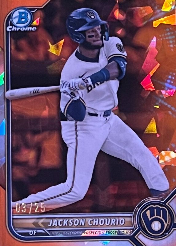 2022 Bowman Draft Sapphire Jackson Chourio ORANGE Refractor /25 Brewers Prospect