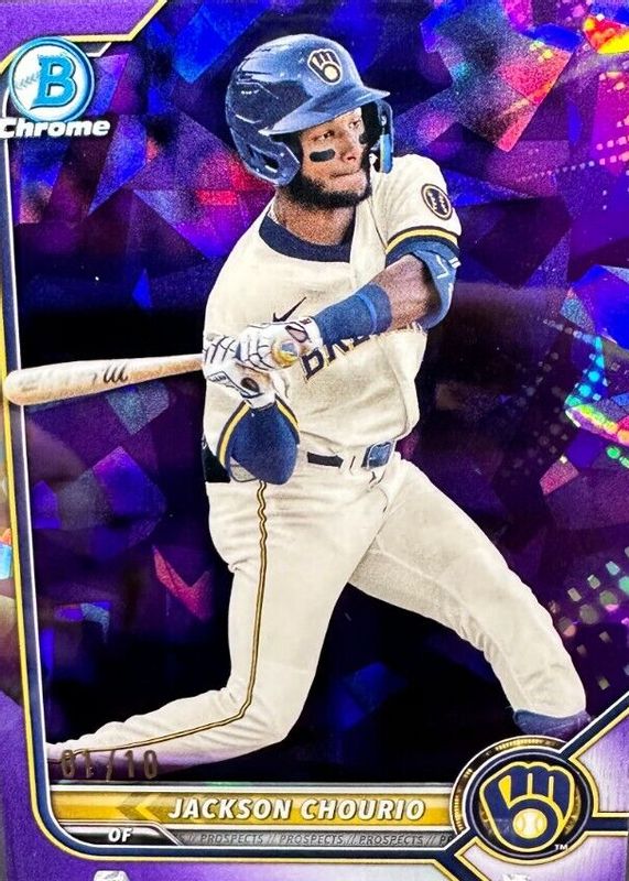 2022 Bowman Draft Chrome Sapphire Jackson Chourio Purple Refractor /10 Brewers