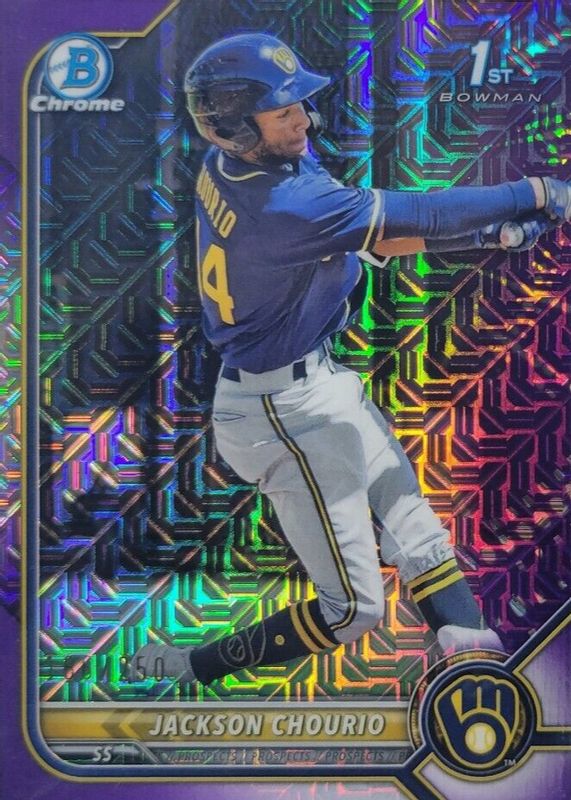 2022 Jackson Chourio Bowman Chrome 1st Purple Mega Rookie Refractor /250 Brewers
