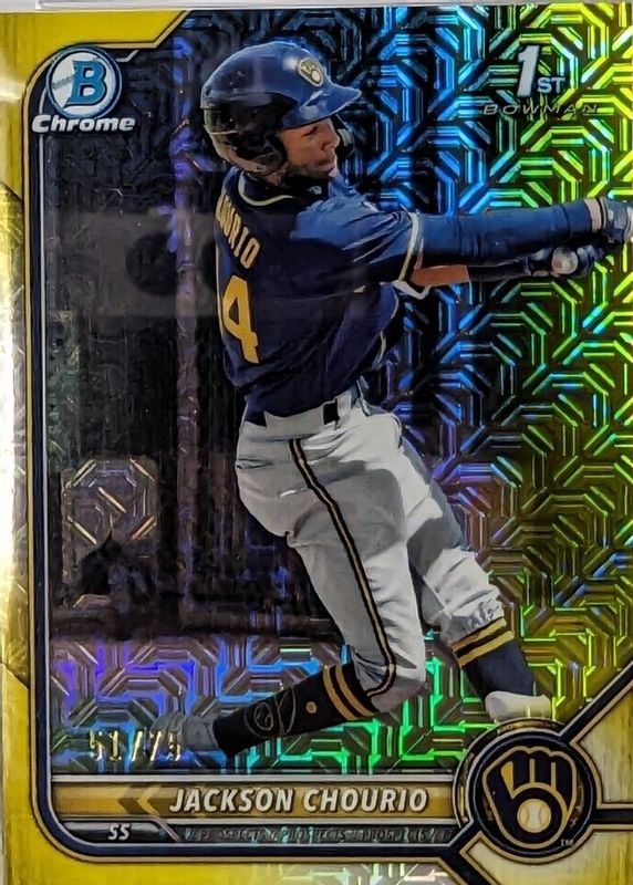 Jackson Chourio 2022 Bowman Mega Box #BCP-79 Chrome Prospects - Yellow Refractor /75 (1st) RAW Price Guide