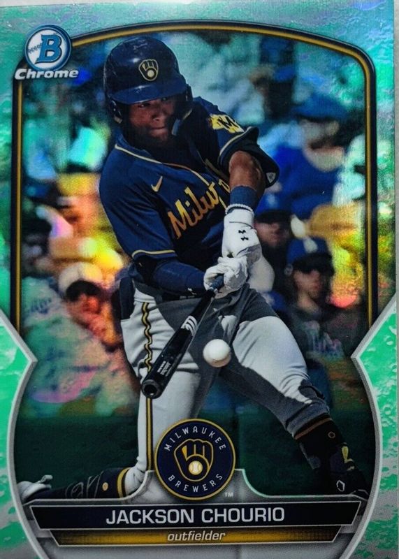 This card is 1 of 22 Jackson Chourio's card variations in the 2023 Bowman Draft set being tracked by Sports Card Investor, including Chrome - Japan Refractor, Chrome - Pearl Refractor, Chrome - Refractor, Chrome - Sky Blue Refractor, and Chrome - Sparkle Refractor.