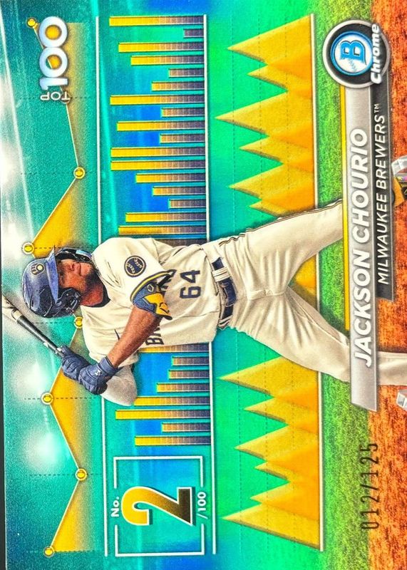 JACKSON CHOURIO BREWERS 2024 BOWMAN CHROME SCOUTS TOP 100 #BTP-2 AQUA /125