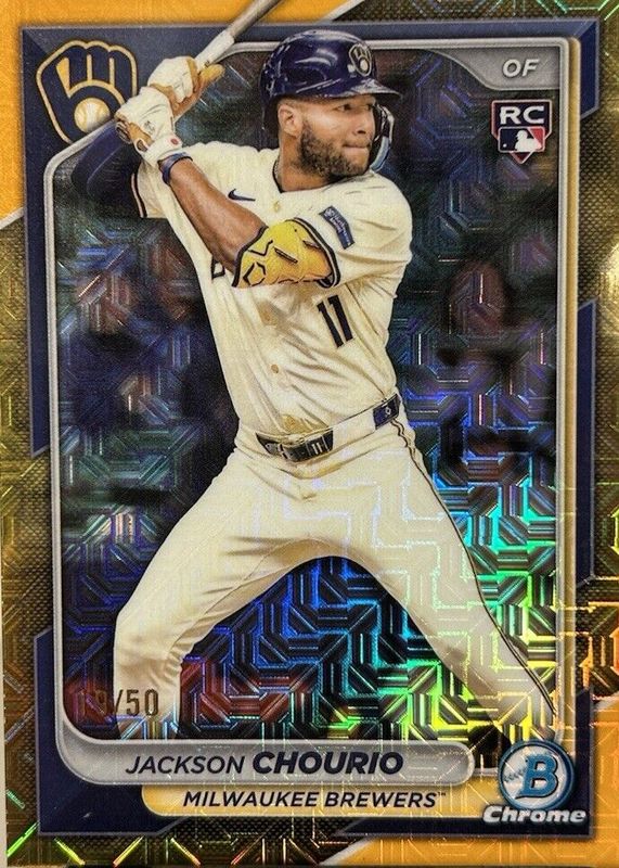 Jackson Chourio 2024 Bowman Chrome Mega Box #69 Gold Mojo Refractor /50 Rookie RAW Price Guide