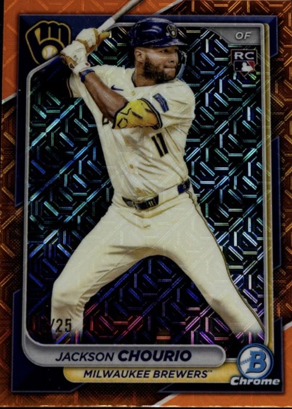 Jackson Chourio 2024 Bowman Chrome Mega Box #69 Orange Mojo Refractor /25 Rookie RAW Price Guide
