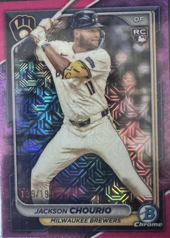 Jackson Chourio 2024 Bowman Chrome Mega Box #69 Pink Mojo Refractor /199 Rookie RAW Price Guide