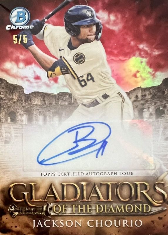 Jackson Chourio 2024 Bowman #GDA-JCH Gladiators of the Diamond Autographs - Red Refractor /5 Rookie RAW Price Guide
