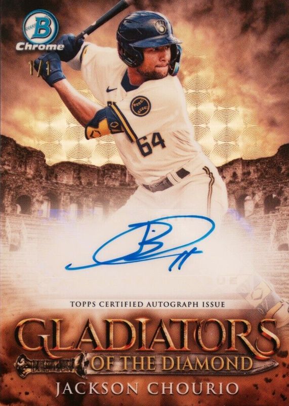 Auctions Ending Soon for Jackson Chourio 2024 Bowman #GDA-JCH Gladiators of the Diamond Autographs - Superfractor /1 Rookie RAW