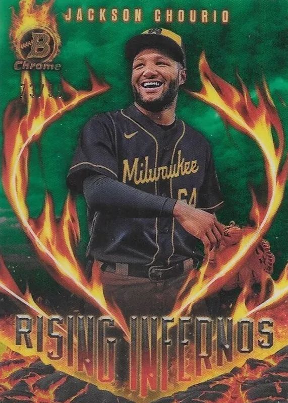 Jackson Chourio 2024 Bowman #RI-20 Rising Infernos - Green Refractor /99 Rookie RAW Price Guide