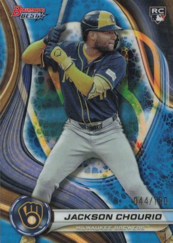 Jackson Chourio Rookie Blue Refractor /150! 2024 Bowman’s Best Milwaukee Brewers