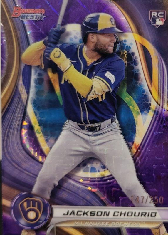 2024 Bowman's Best Jackson Chourio RC Purple Mojo Refractor #247/250 Brewers