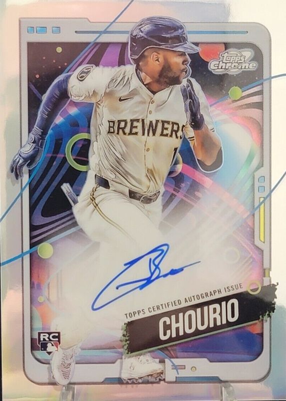The Jackson Chourio 2024 Topps Chrome Cosmic #CCA-JC Autographs Rookie card in Raw condition has moved up $62.49 (+45.4%) in the last 30 days and was last sold for $199.99 .