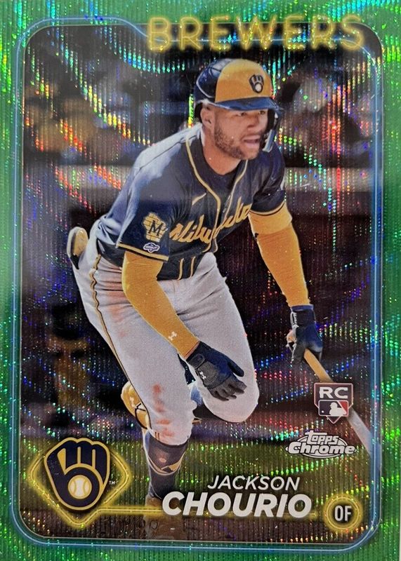2024 Topps Chrome Jackson Chourio Green Wave Refractor #161 /99 (RC) Rookie