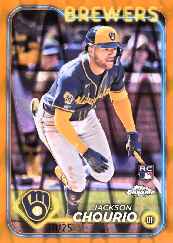 Best Prices Available For Sale of Jackson Chourio 2024 Topps Chrome #161 Orange RayWave Refractor /25