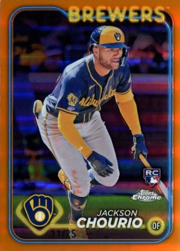 JACKSON CHOURIO 2024 Topps Chrome ORANGE REFRACTOR RC Brewers #161 Rookie /25
