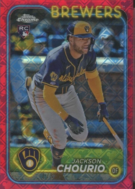 Auctions Ending Soon for Jackson Chourio 2024 Topps Chrome #161 Red Refractor /5 Rookie RAW