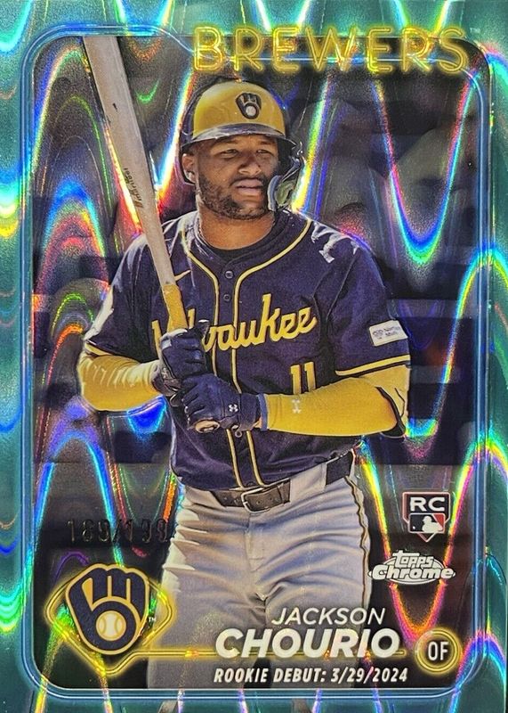2024 Topps Chrome Update Jackson Chourio RC Debut #/199 Aqua Raywave Refractor