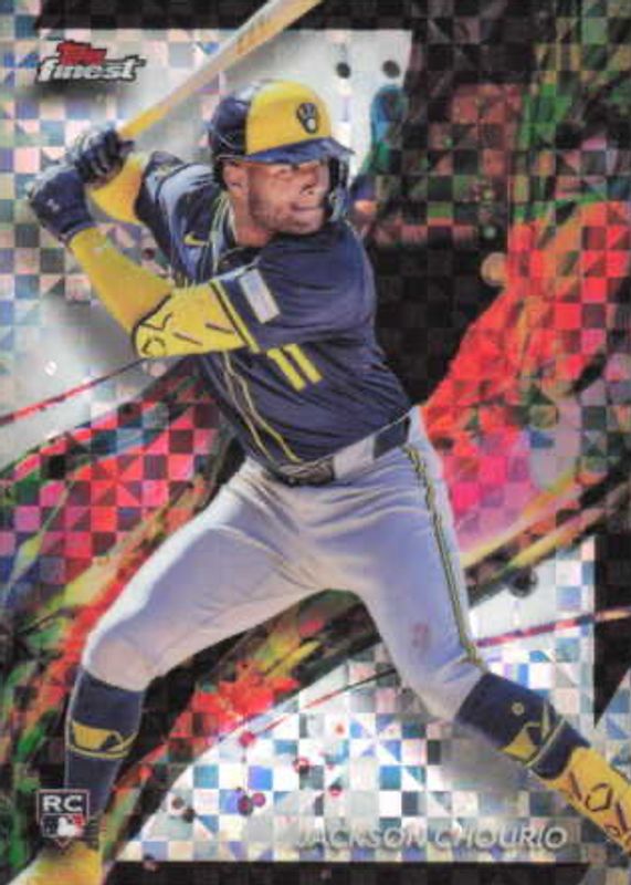 The Jackson Chourio 2024 Topps Finest #11 Common - Checkerboard Refractor Rookie card in Raw condition has moved down -$1.13 (-36.0%) in the last 30 days and was last sold for $2.01 .