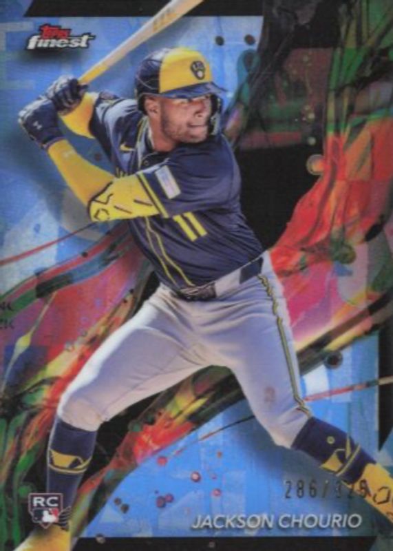 This card is 1 of 56 Jackson Chourio's card variations in the 2024 Topps Finest set being tracked by Sports Card Investor, including Common, Rare, Uncommon, Common - Checkerboard Refractor, and Common - Refractor.