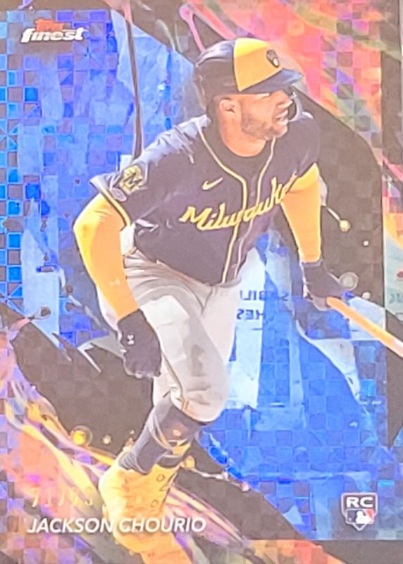 This card is 1 of 56 Jackson Chourio's card variations in the 2024 Topps Finest set being tracked by Sports Card Investor, including Common, Rare, Uncommon, Common - Checkerboard Refractor, and Common - Refractor.