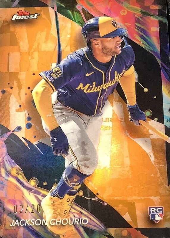 The Jackson Chourio 2024 Topps Finest #159 Uncommon - Orange Refractor /20 Rookie card in Raw condition has not changed in price in the last 30 days and was last sold for $125.00 .