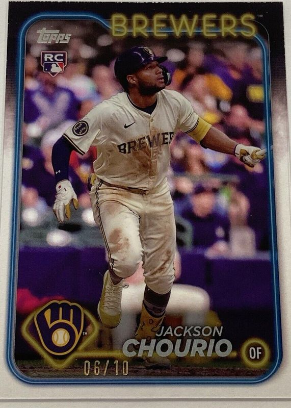This card is 1 of 120 Jackson Chourio's card variations in the 2024 Topps Update set being tracked by Sports Card Investor, including Base, Rookie Debut, Aqua, Ghost Foil, and Gold Rainbow Foil.