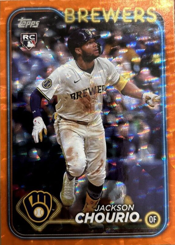 2024 Topps Update Jackson Chourio #US240 Orange Crackle Foilboard /299 (RC)