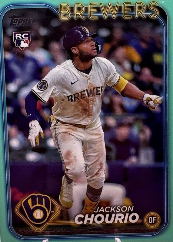 The Jackson Chourio 2024 Topps Update #US155 Rookie Debut - Aqua card in Raw condition has moved up $0.02 (+0.7%) in the last 30 days and was last sold for $3.03 .