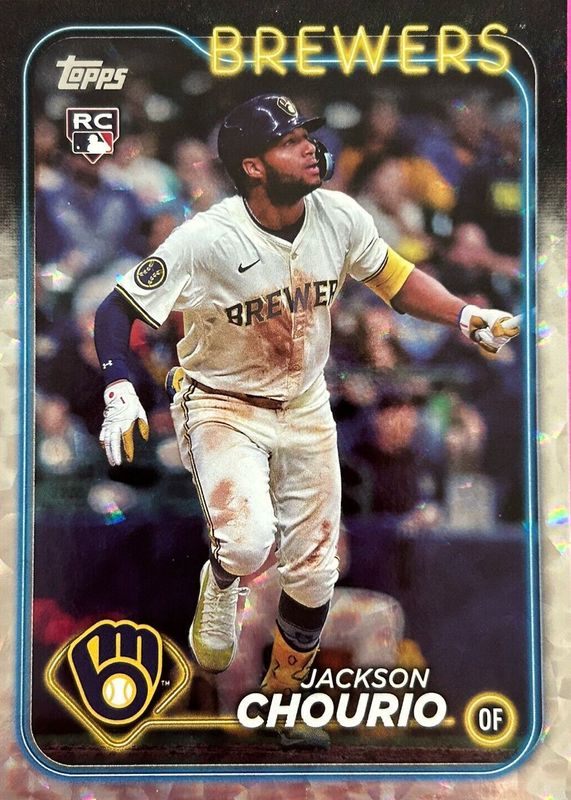 This card is 1 of 120 Jackson Chourio's card variations in the 2024 Topps Update set being tracked by Sports Card Investor, including Base, Rookie Debut, Aqua, Ghost Foil, and Gold Rainbow Foil.