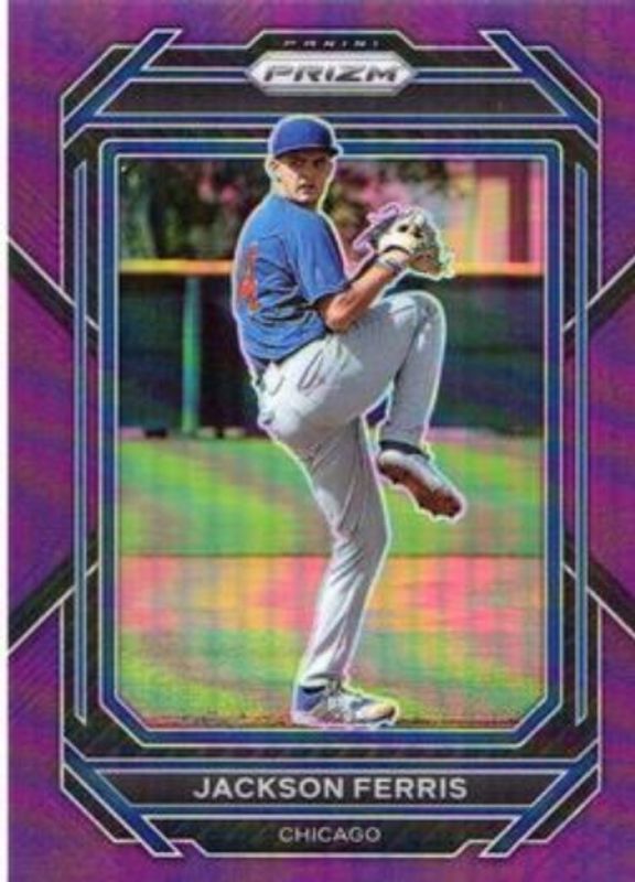 The Jackson Ferris 2023 Prizm #57 Purple /99 card is 1 of 25 Jackson Ferris' card variations in the 2023 Prizm set being tracked by Sports Card Investor, including Base, Blue Ice, Giraffe, Green Ice, and Hyper.