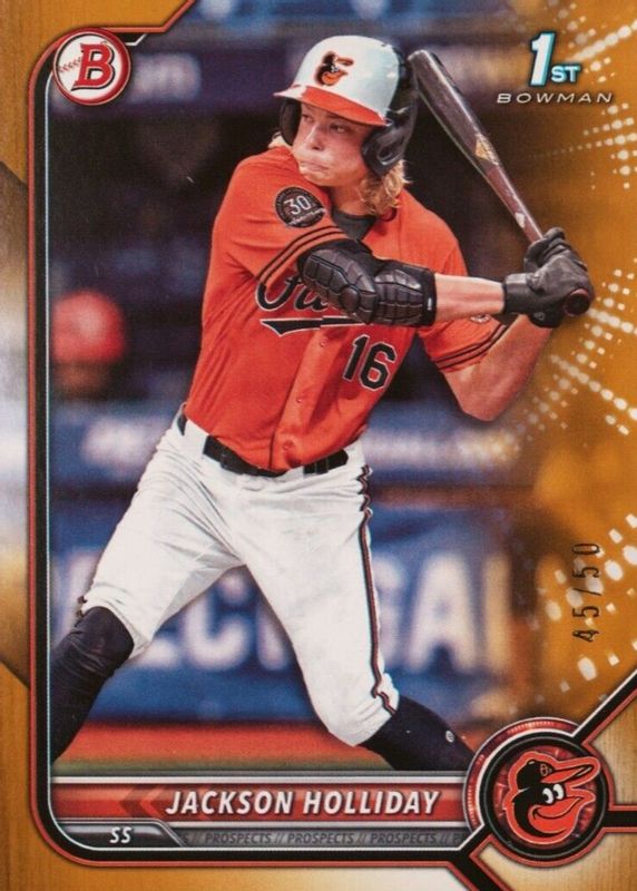 2022 Bowman Draft Jackson Holliday 1st Prospect Gold Paper /50 Orioles
