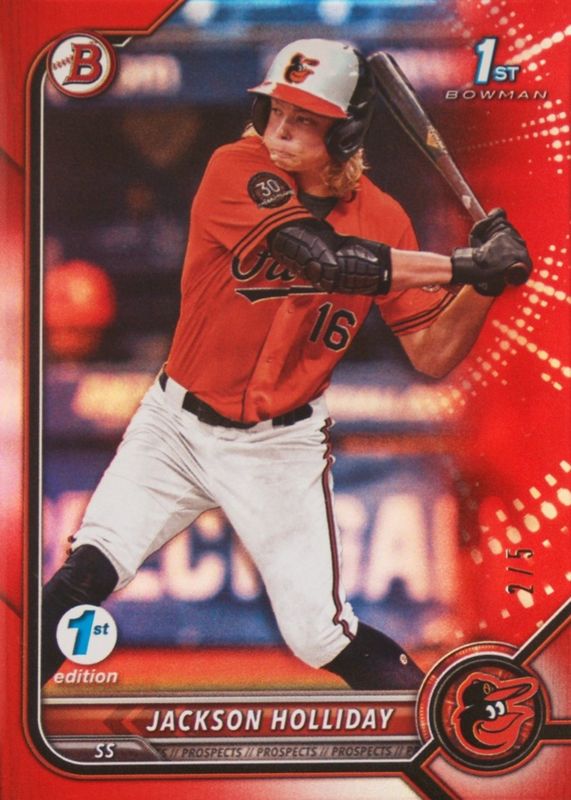 Jackson Holliday 2022 Bowman Draft #BD-168 Red /5 (1st) RAW Price Guide