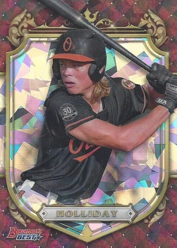 This card is 1 of 21 Jackson Holliday's card variations in the 2022 Bowman's Best set being tracked by Sports Card Investor, including Top Prospects, Top Prospects - Atomic Refractor, Top Prospects - Refractor, Top Prospects - Mini-Diamond Refractor /299, and Top Prospects - Purple Refractor /250.