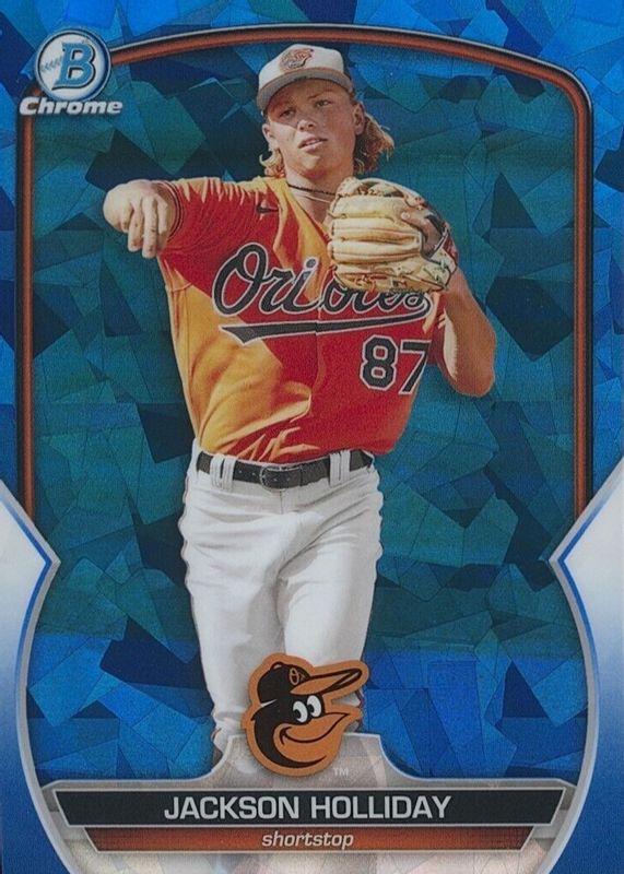 The Jackson Holliday 2023 Bowman Chrome Sapphire Edition #BCP-227 Prospects card in Raw condition has moved up $0.93 (+18.4%) in the last 30 days and was last sold for $5.99 .