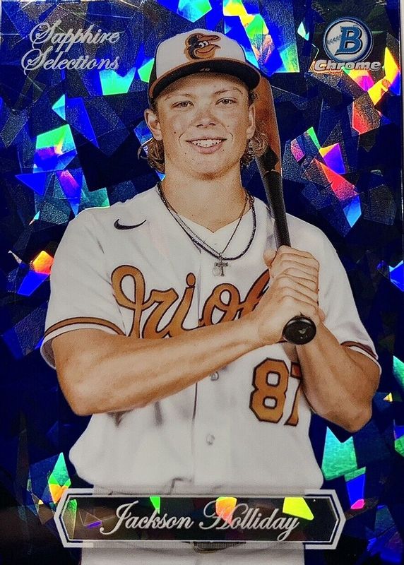 The Jackson Holliday 2023 Bowman Chrome Sapphire Edition #BSS-2 Sapphire Selections card in Raw condition has not changed in price in the last 30 days and was last sold for $6.50 .