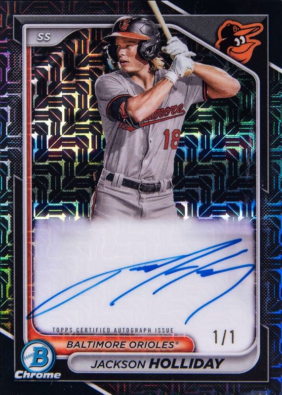 Jackson Holliday 2024 Bowman Mega Box #BMA-JH Chrome Prospect Auto - Black Refractor /1 Rookie RAW Price Guide