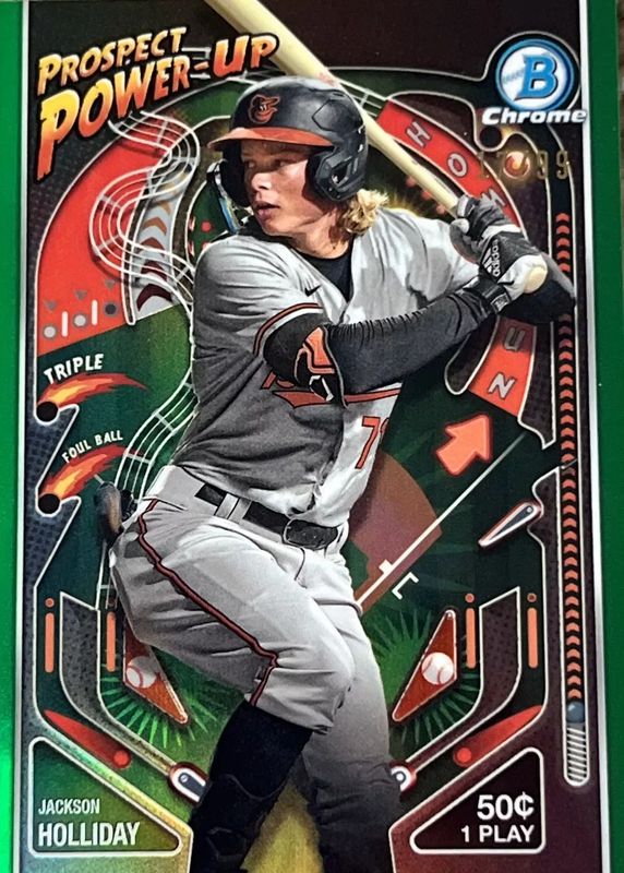 🔥 2024 BOWMAN CHROME JACKSON HOLLIDAY PROPECT POWER-UP GREEN REFRACTOR /99 🔥