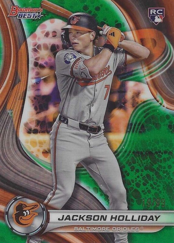 2024 Bowman’s Best JACKSON HOLLIDAY /99 Green Refractor RC Orioles Baseball