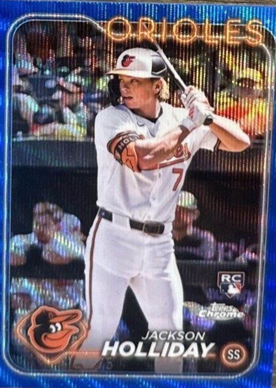Auctions Ending Soon for Jackson Holliday 2024 Topps Chrome #88 Blue Wave Refractor /75 Rookie RAW