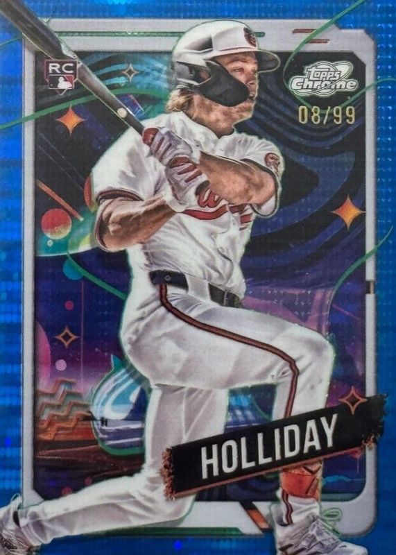 The Jackson Holliday 2024 Topps Chrome Cosmic #7 Blue Moon Refractor /99 Rookie card in Raw condition has not changed in price in the last 30 days and was last sold for $42.00 .