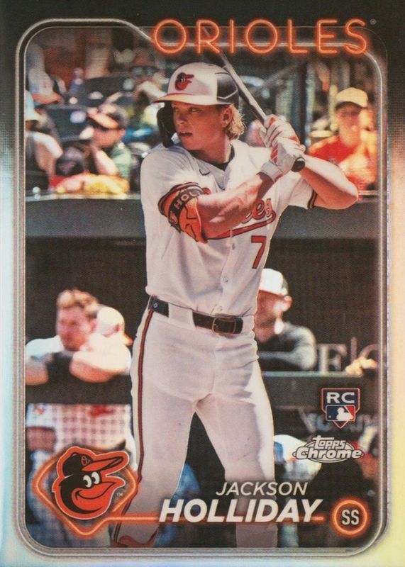 The Jackson Holliday 2024 Topps Chrome #88 Refractor Rookie card in Raw condition has moved up $0.72 (+16.9%) in the last 30 days and was last sold for $4.99 .