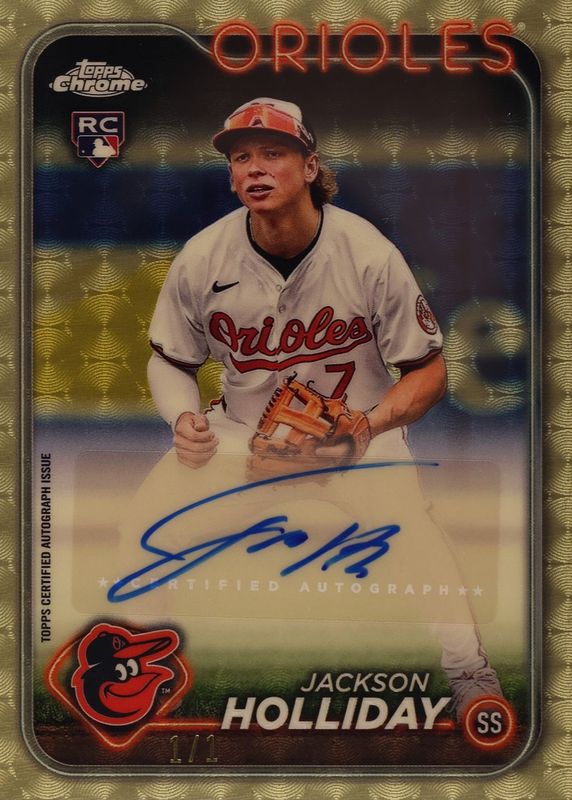 Auctions Ending Soon for Jackson Holliday 2024 Topps Chrome Update #AC-JH Autographs - Superfractor /1 Rookie BGS 9