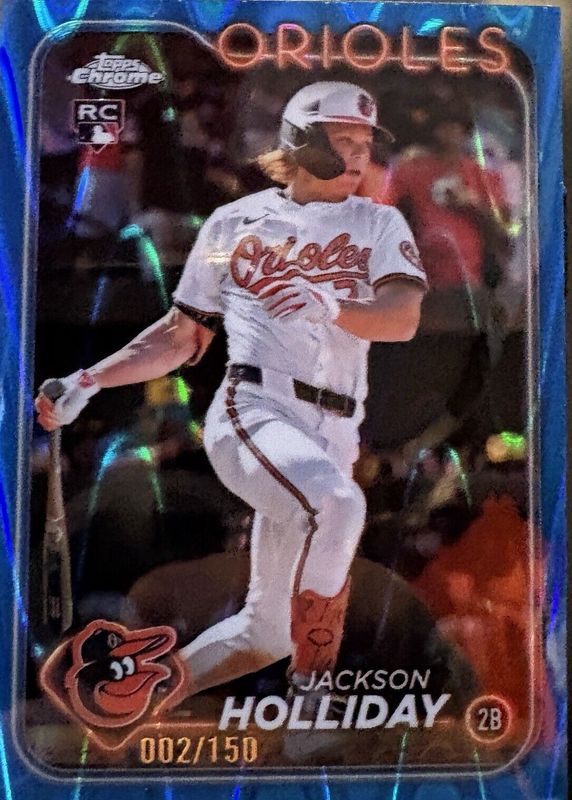 The Jackson Holliday 2024 Topps Chrome Update #USC200 Blue RayWave Refractor /150 Rookie card in Raw condition has not changed in price in the last 30 days and was last sold for $20.51 .