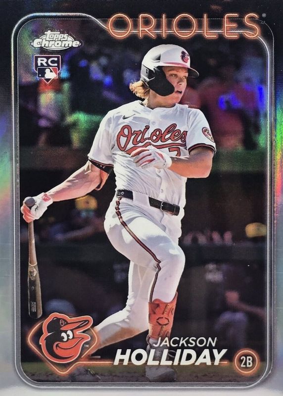 The Jackson Holliday 2024 Topps Chrome Update #USC200 Refractor Rookie card in Raw condition has moved up $1.80 (+36.4%) in the last 30 days and was last sold for $6.75 .