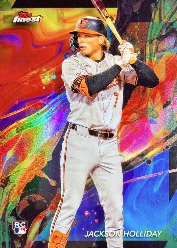 Auctions Ending Soon for Jackson Holliday 2024 Topps Finest #76 Common - Oil Spill Refractor /(SSP) Rookie RAW